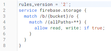 • Select Firebase Database option and Click on the rules and set it to .read and .write to true